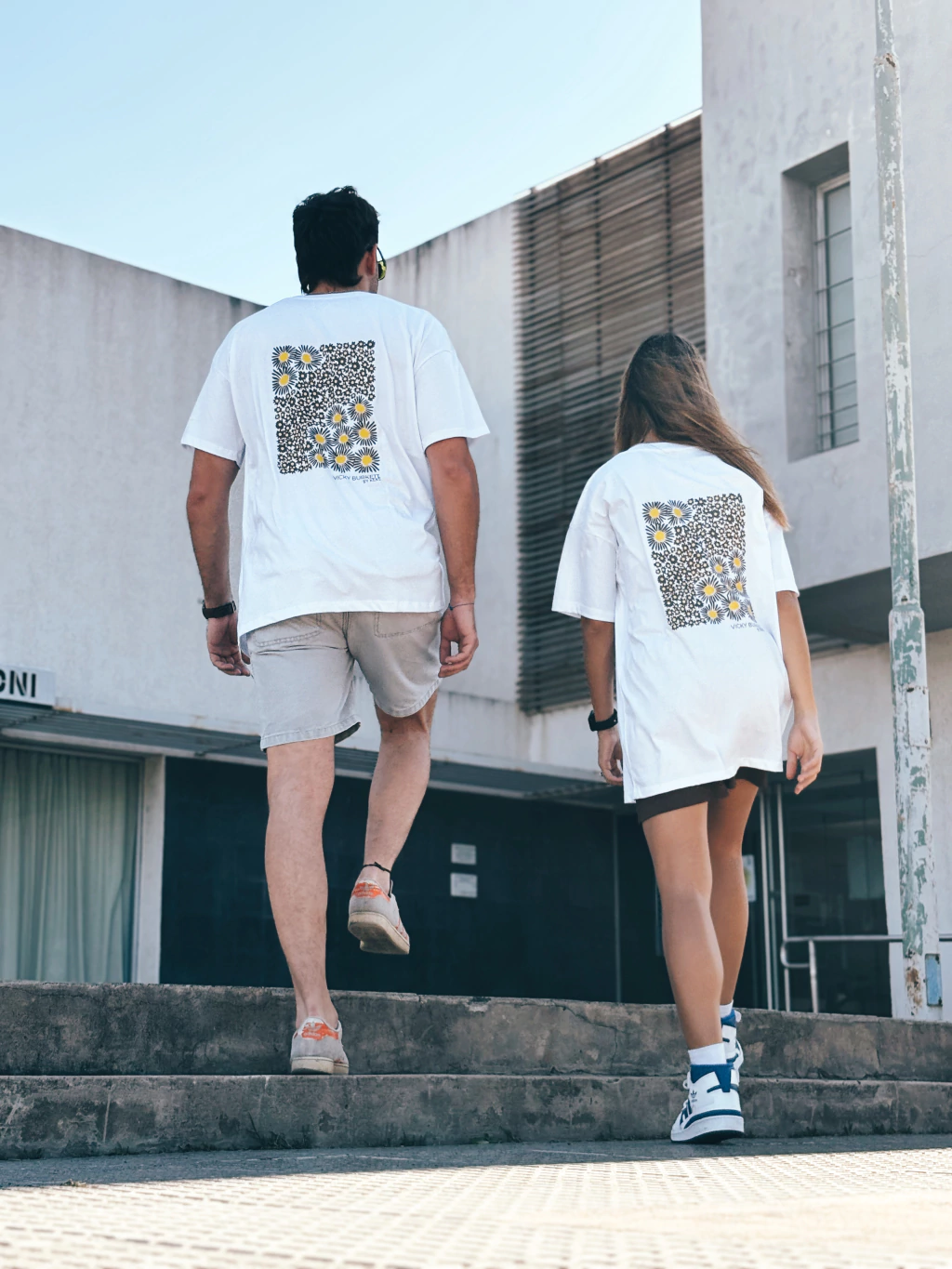 Referencia: Agustina tiene puesto talle M (mide 1,72m) y Lautaro talle XL (mide 1,90m).